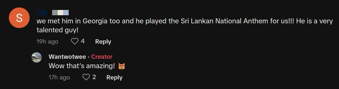Another user also took to the comment section to share about their encounter with the musician who was able to play the Sri Lankan national anthem as well.