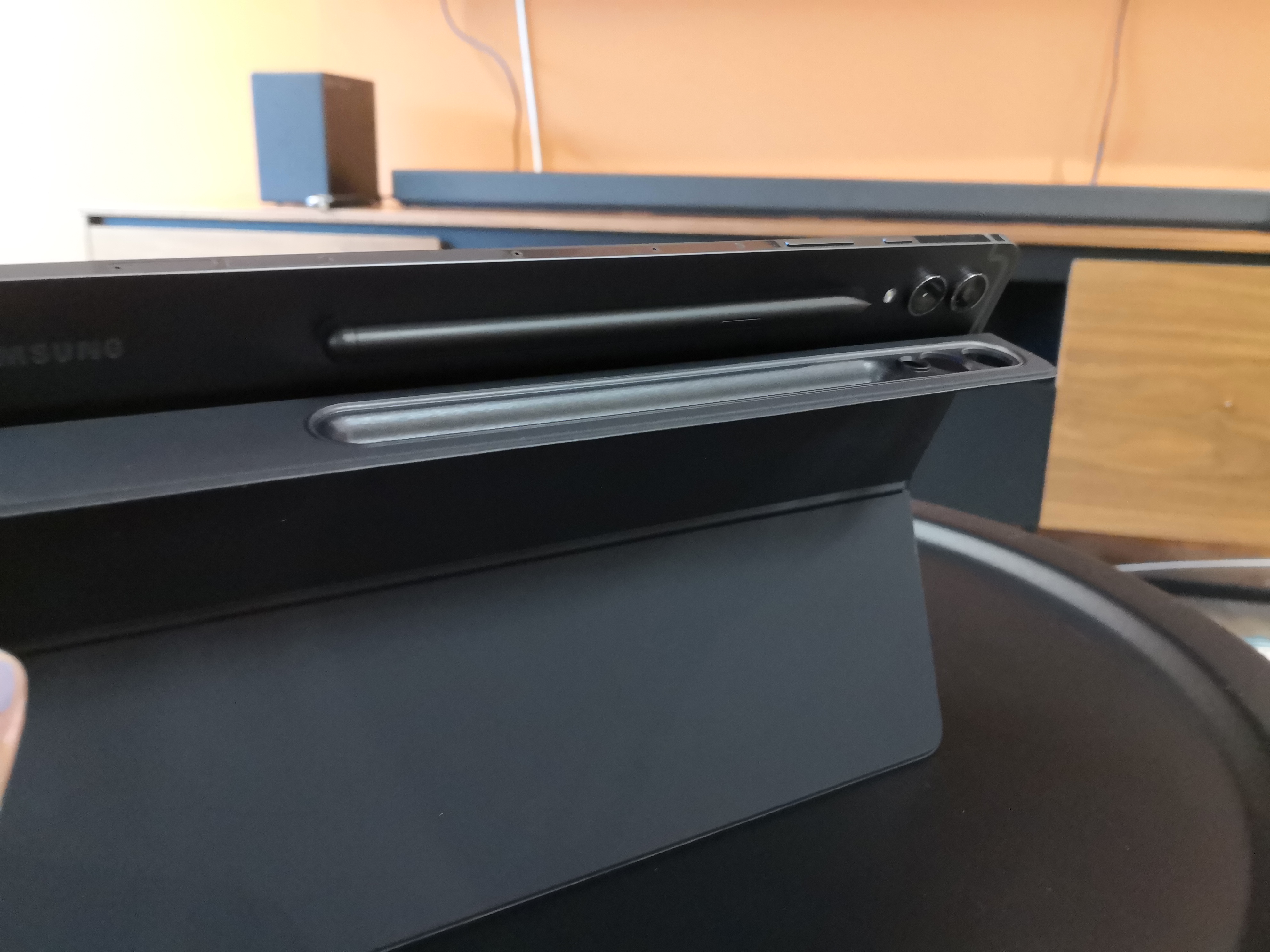 Placing the S Pen on the back of the tablet allows it to both be stored and charged at the same time.
